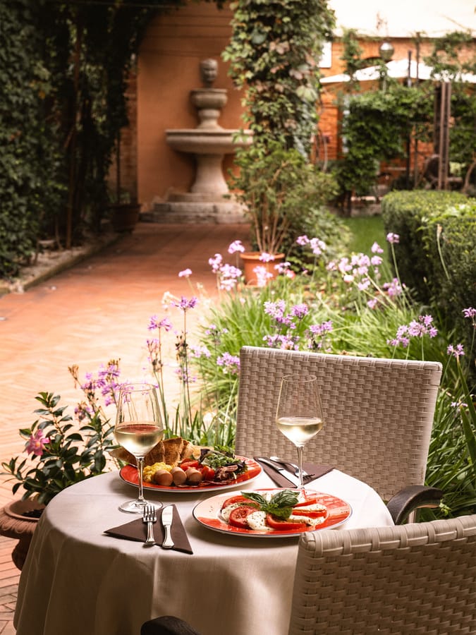 La colazione all'Hotel Pensione Accademia è un rituale da assaporare con calma, senza fretta. Accomodati nella nostra sala interna dal design sofisticato e lasciati avvolgere dalla calda atmosfera di Villa Maravege. In alternativa, durante la bella stagione, puoi goderti il giardino, accarezzato dai raggi del sole e con uno sguardo che si perde tra i canali veneziani.